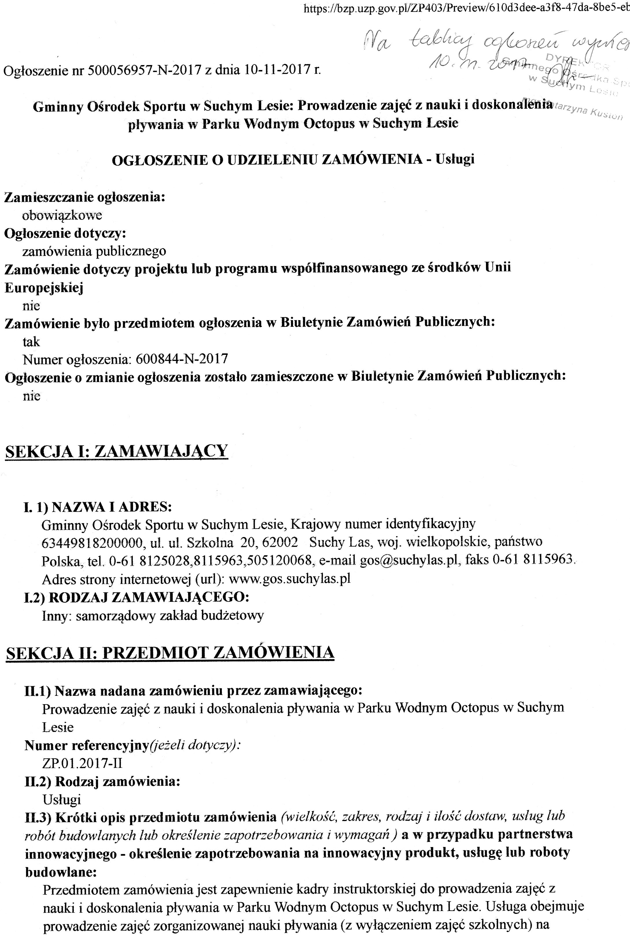 zawarcie umowy prowadzenie zajęć z nauki i doskonalenia pływania