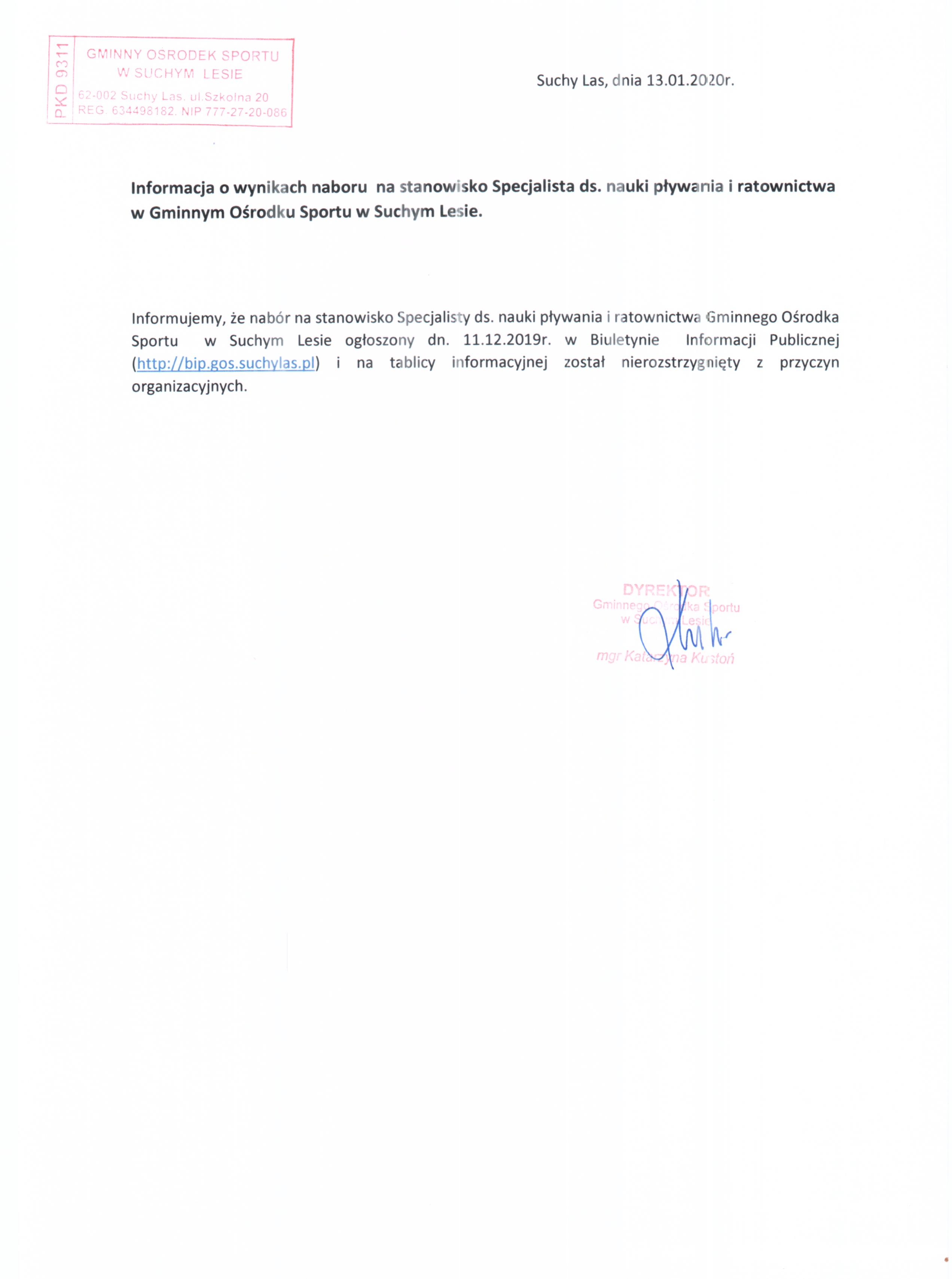 Informacja o wynikach naboru