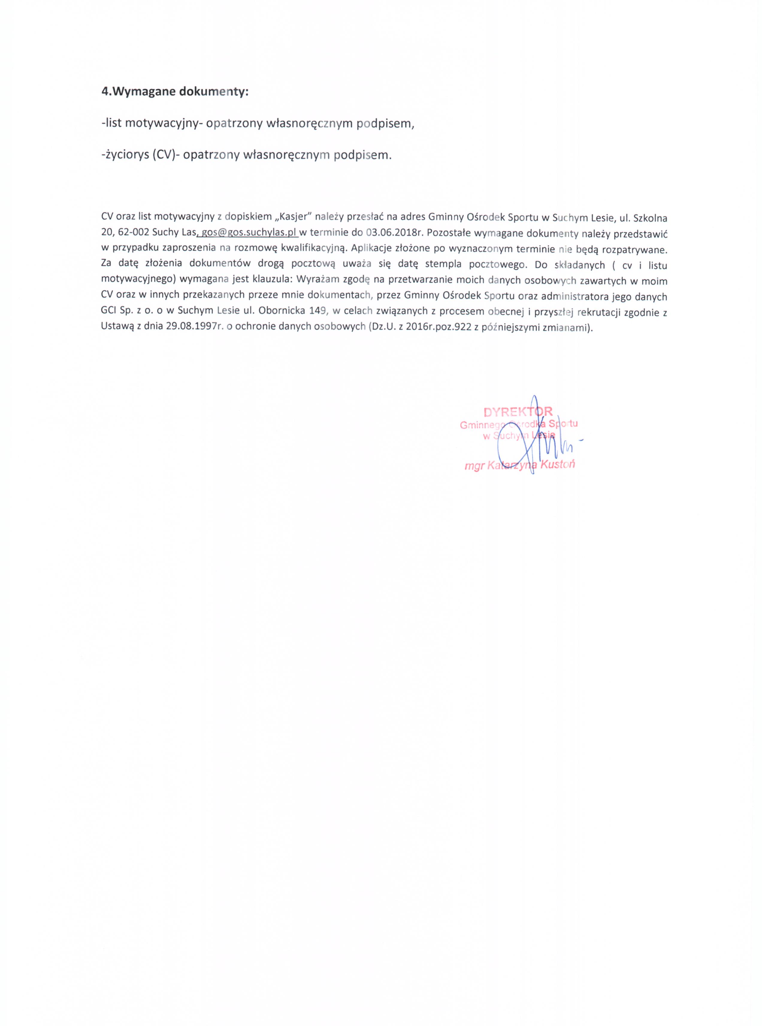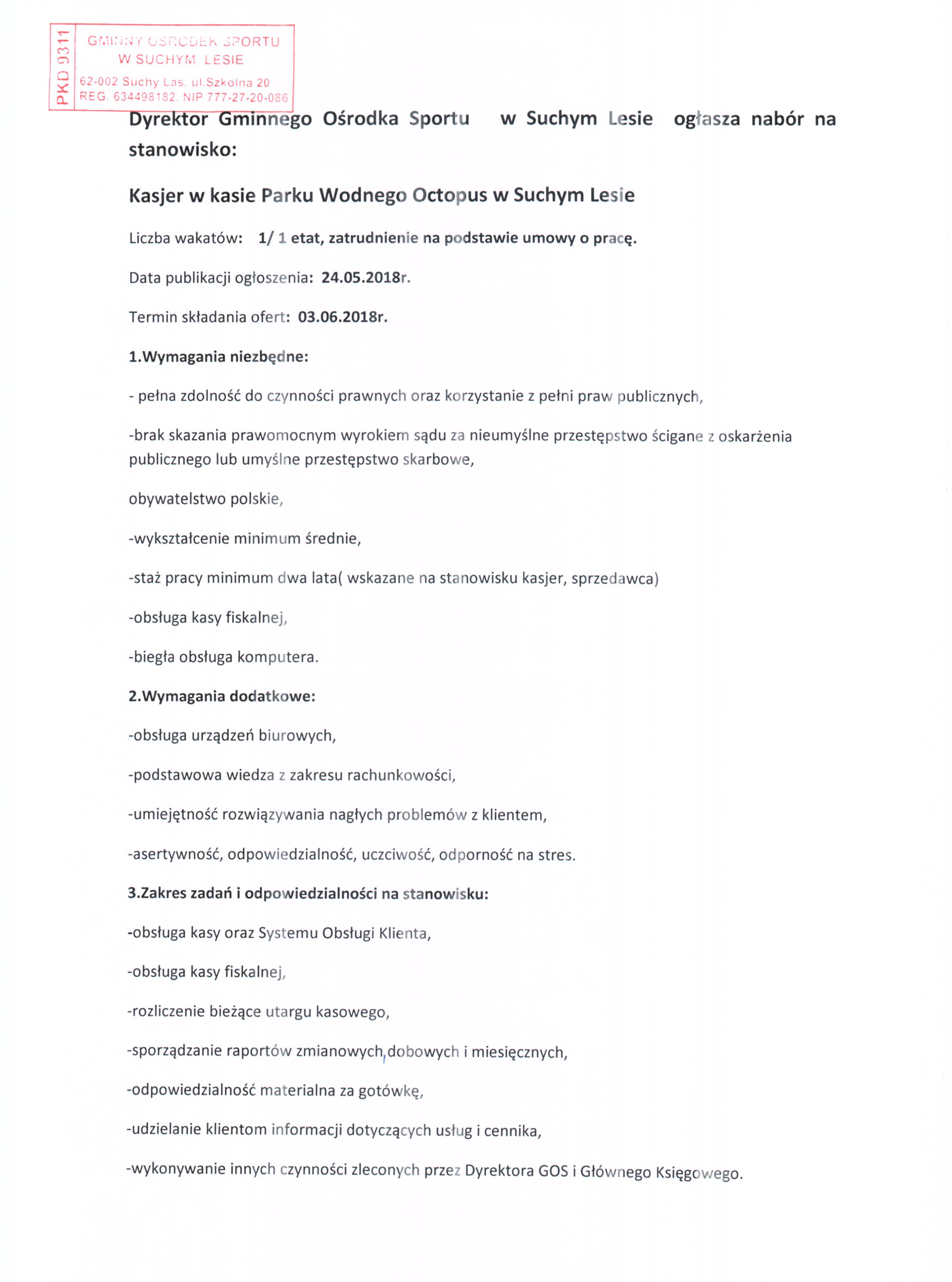 Nabór na stanowisko: Kasjer w kasie Parku Wodnego Octopus